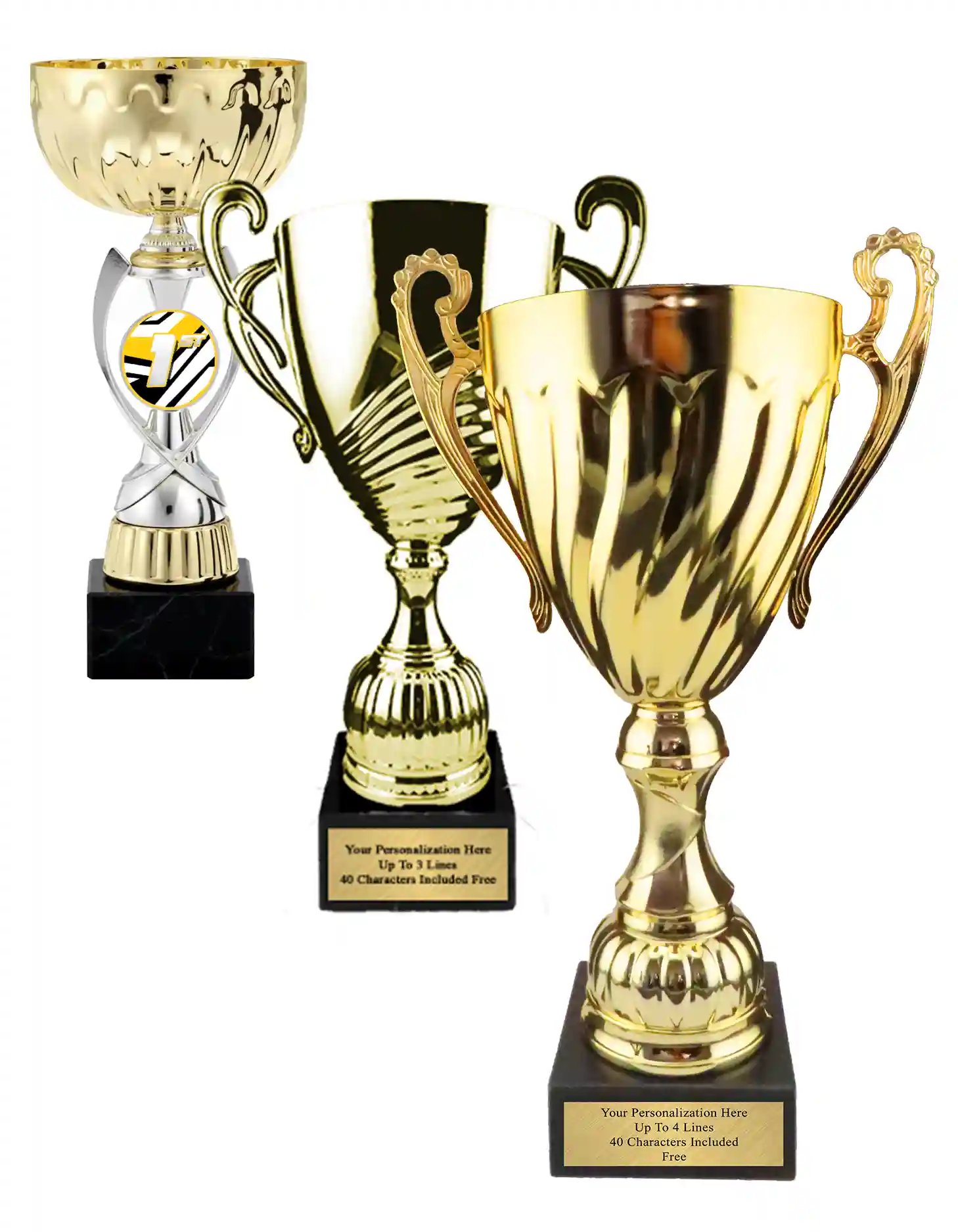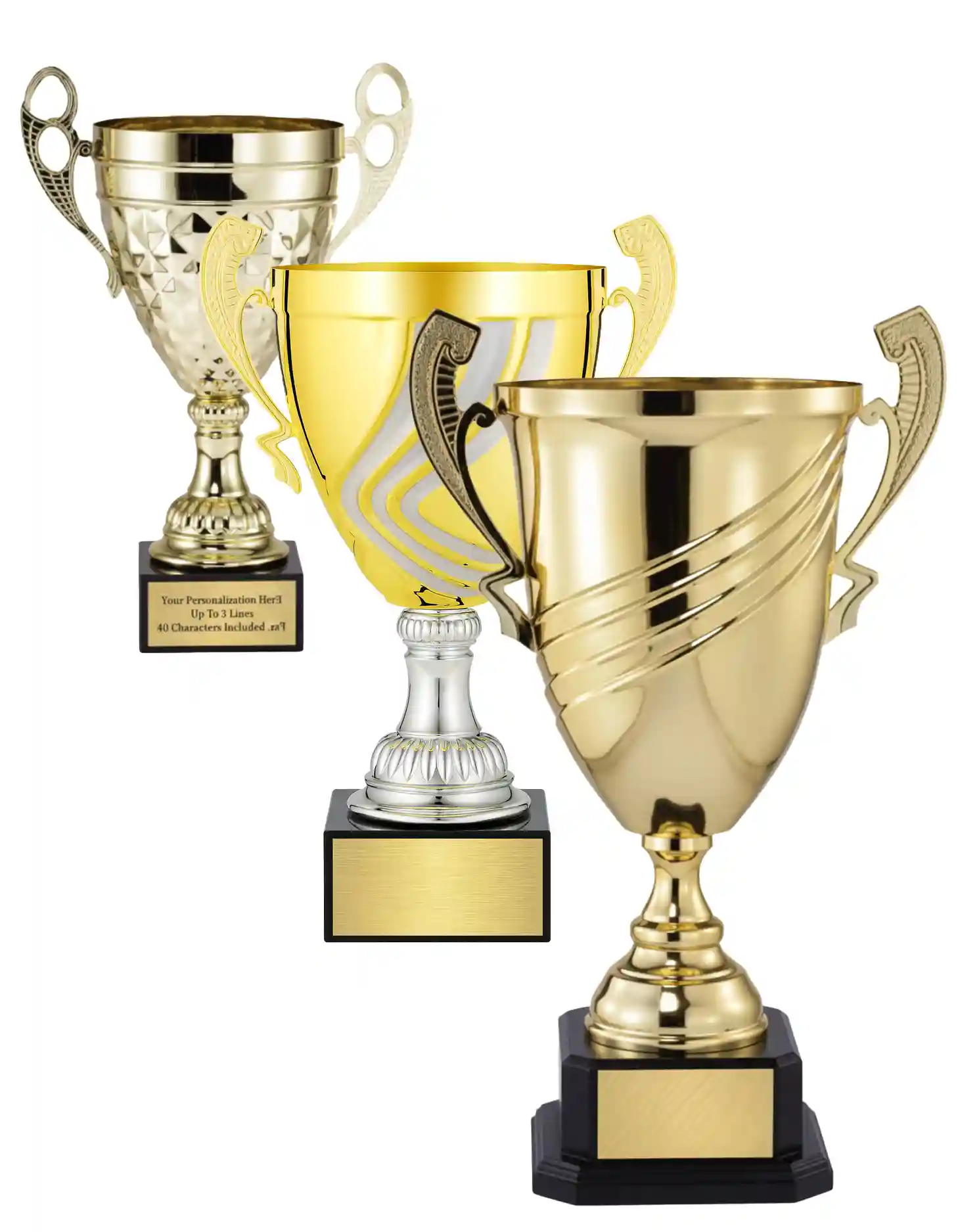 Choose from gold, silver, or two-tone soccer cup trophies available in multiple sizes and base styles. Each trophy soccer cup can be personalized with team names, event details, and dates for a professional finish. We even offer cheap soccer trophy cup options for schools and youth leagues that need quality on a budget. Every soccer cup trophy is USA-assembled and ships quickly, so you can recognize winners without delay.