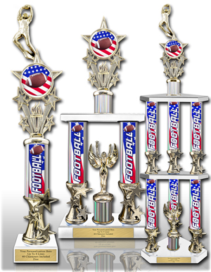 USA-made football trophies & awards from Trophy Deals. Free shipping, no engraving fees, fast lead times, order edits, expedited options, and bulk discounts.