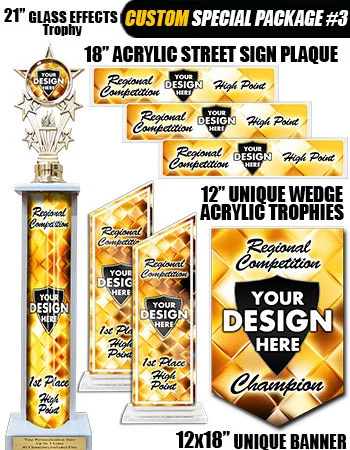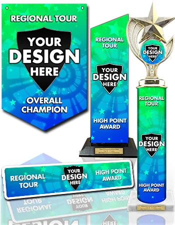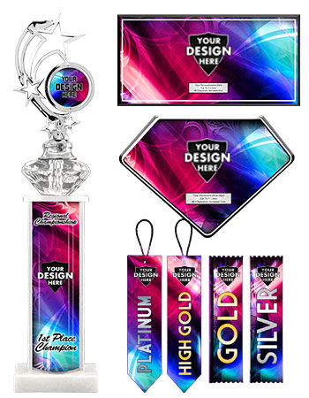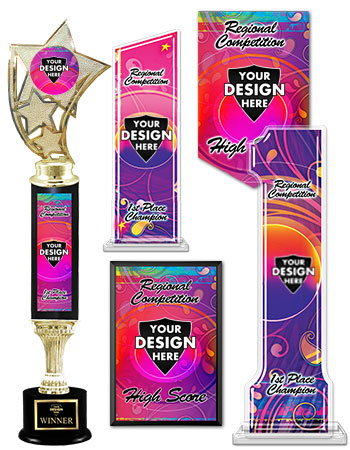 Create unique special awards for dance competitions. Customize titles like Best Costume or Most Entertaining with trophies, plaques, or medals.