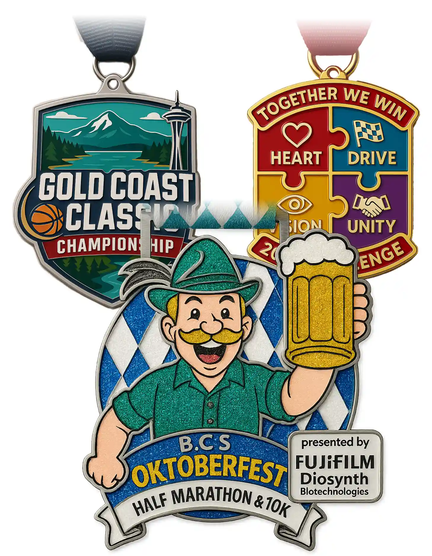 We deliver manufacturer-direct pricing across entry and premium tiers — from cheap custom medals for big headcounts to showcase custom award medals for top placements. Ask about seasonal discounts for custom running medals, custom sports medals, and custom 5k race medals.