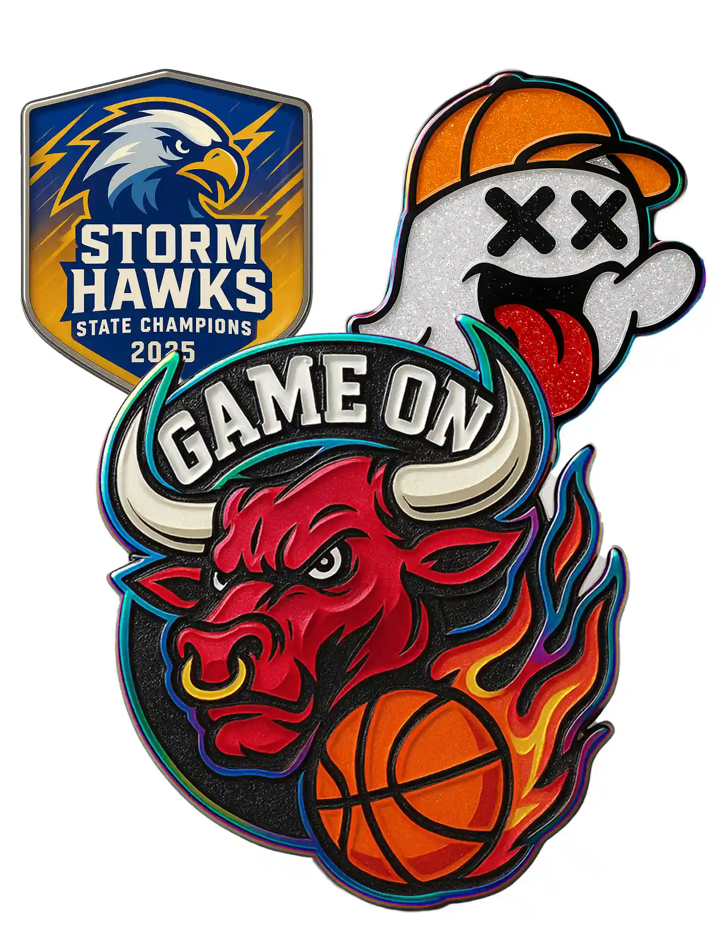 Custom Trading Pins Perfect for team sports, tournaments, and club events. Add glitter, spinners, danglers, or glow-in-the-dark effects.