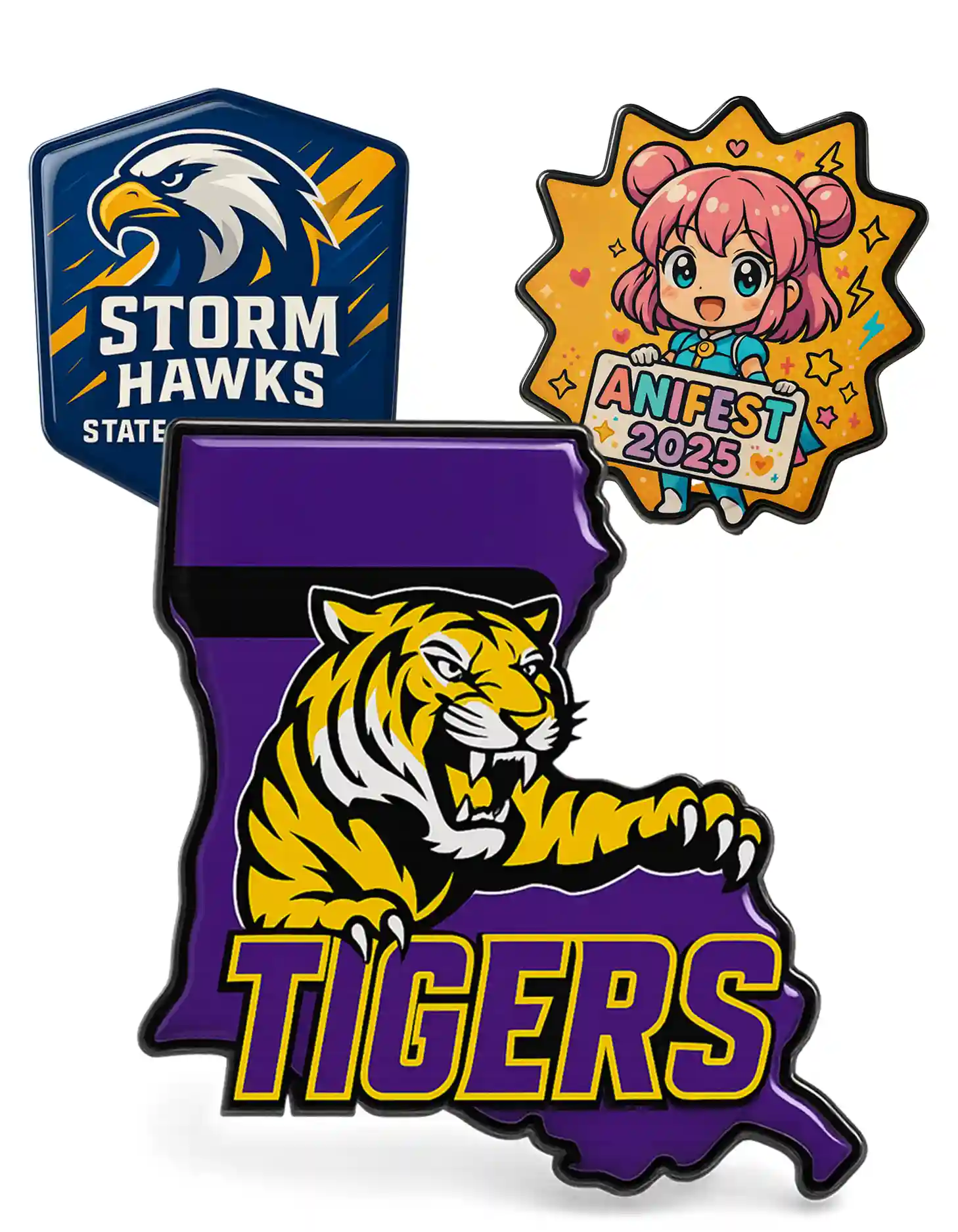 We make it easy to create pins from your logo, mascot, or event theme — with free mockups, a wide range of finishes, and U.S.-based production for fast delivery.