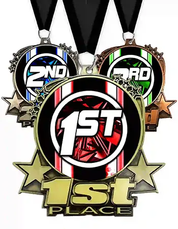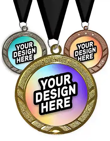 Every award medal includes free engraving with names, event titles, or dates. Many styles allow for full-color inserts, perfect for branded awards medal presentations. From single medal award pieces to bulk cheap custom medals, we make personalization simple.
