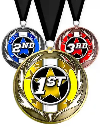 Our gold medal awards, silver medals, and bronze medals are available in a variety of finishes. Whether it’s first, second, or third place, we offer both premium and cheap award medals so you can award winners at every level.