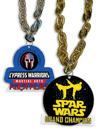 Our award medals are produced in metal, acrylic, or resin with detailed designs. Options include lightweight acrylics for medals cheap and bulk orders, or heavy die-cast custom medal styles for elite competitions. No matter the budget, we ensure your medals and awards look polished and professional.
